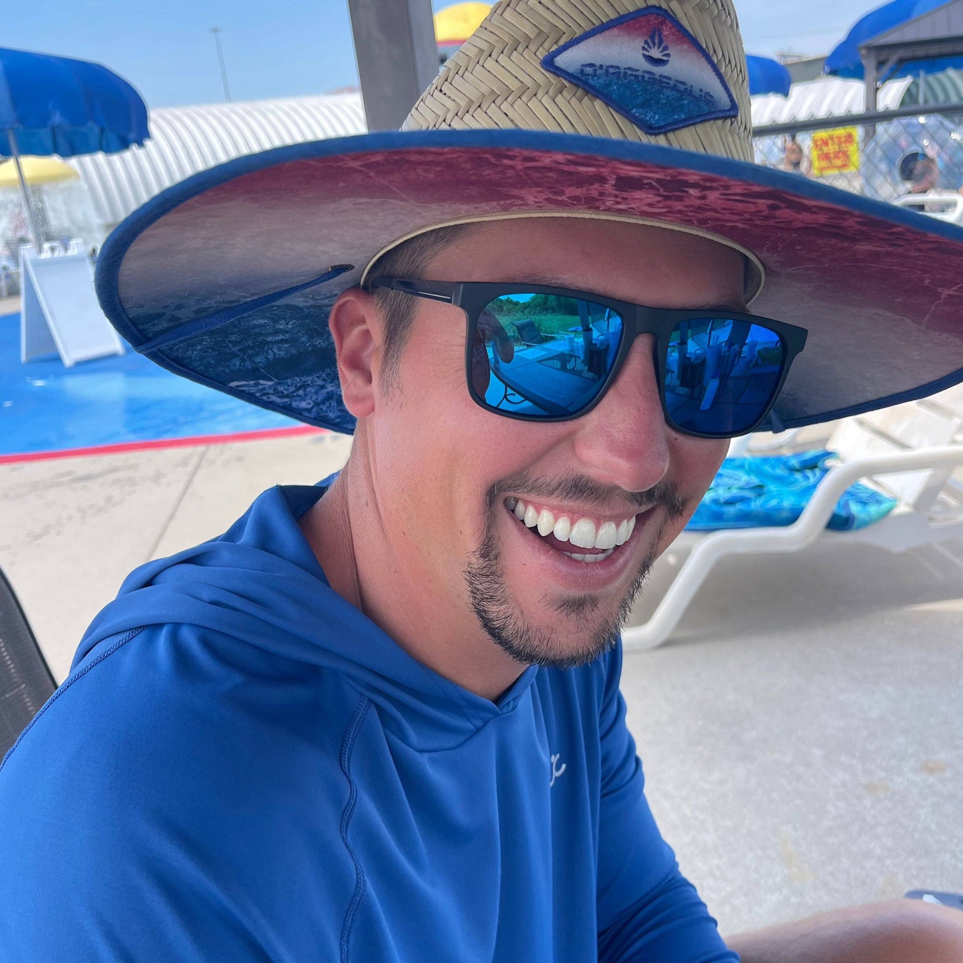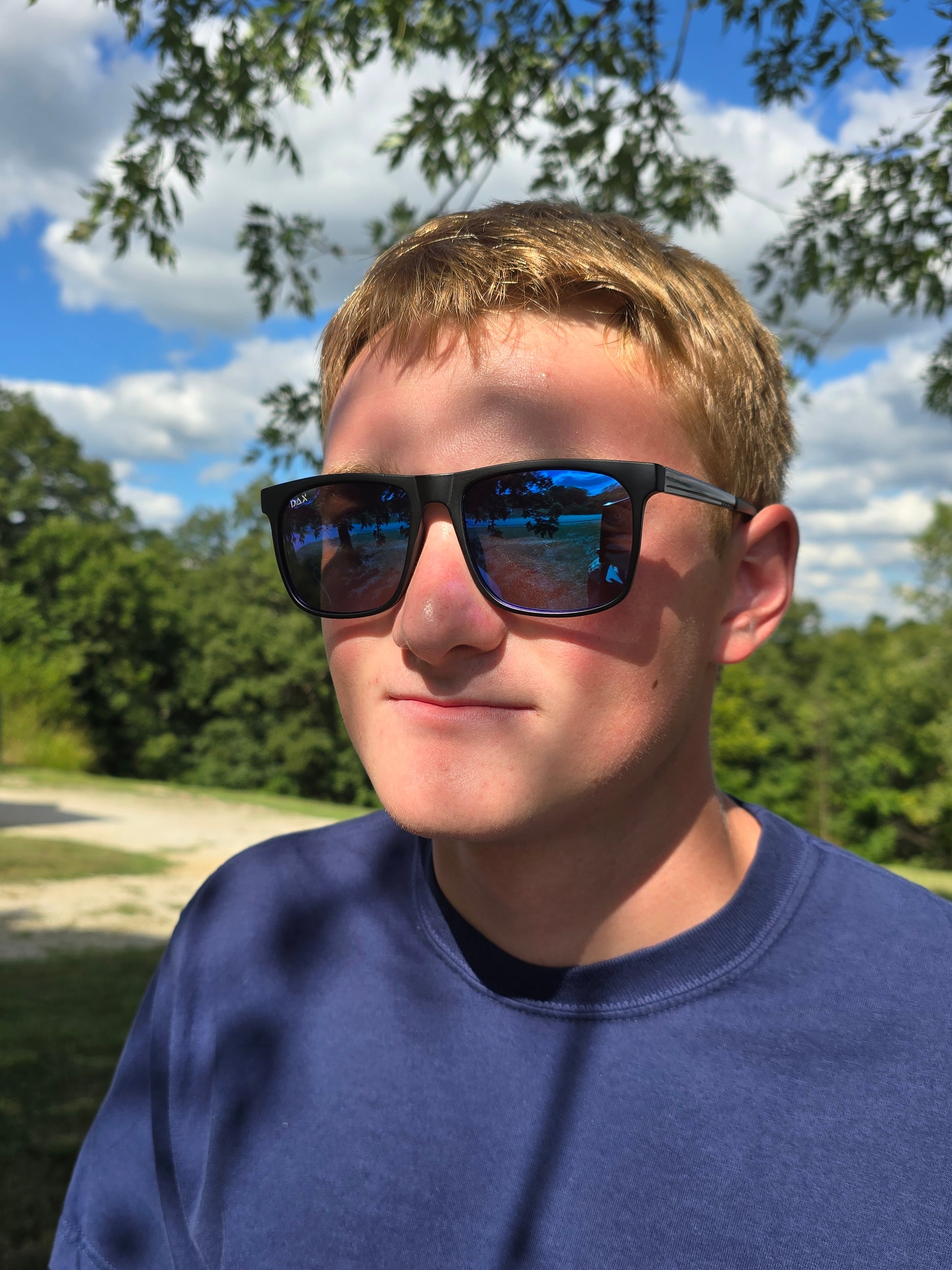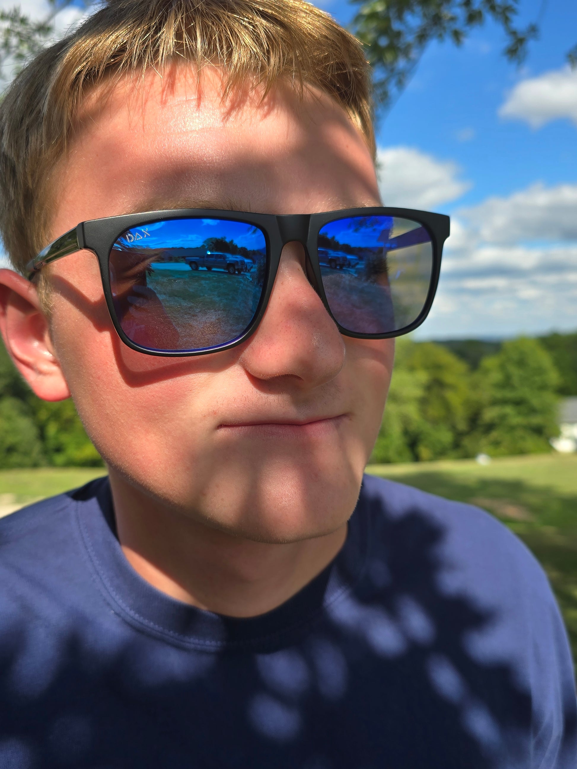 Dash in Blue by DAX Eyewear - Sleek and modern, these sunglasses feature a black frame with bold blue polarized lenses for sharp style and all-day comfort. Designed with a hair-friendly fit, UV400 protection, and lightweight metal alloy construction, they’re perfect for everyday wear—from the open road to weekends outdoors.