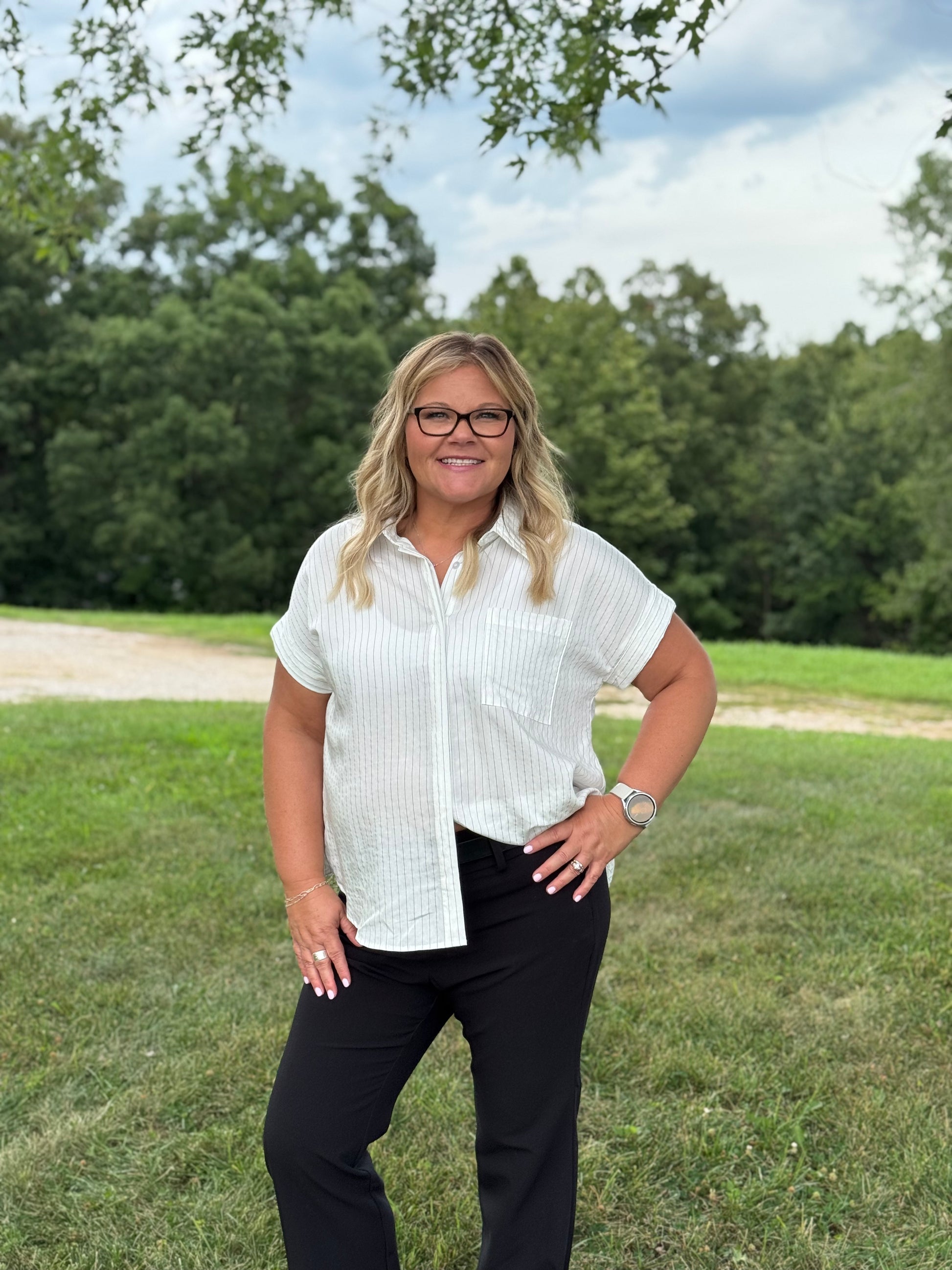 Breezy and flattering, this plus-size button-up brings effortless polish to your look. The lightweight pinstripe fabric drapes beautifully, keeping you cool and confident whether you’re at the office or out with friends. With classic details and all-day comfort, it’s a timeless top you’ll reach for again and again.