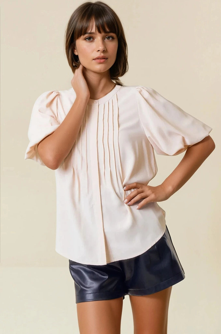 Silky-smooth and effortlessly sophisticated, the Sloane Blouse is your go-to piece for days when you want to feel polished yet comfortable. The delicate pintuck pleats and hidden button-down front create a clean, refined look, while the dramatic bubble sleeves add just the right touch of femininity. From desk to dinner, this blouse moves with you—making you feel confident, stylish, and ready for whatever the day (or night) brings.